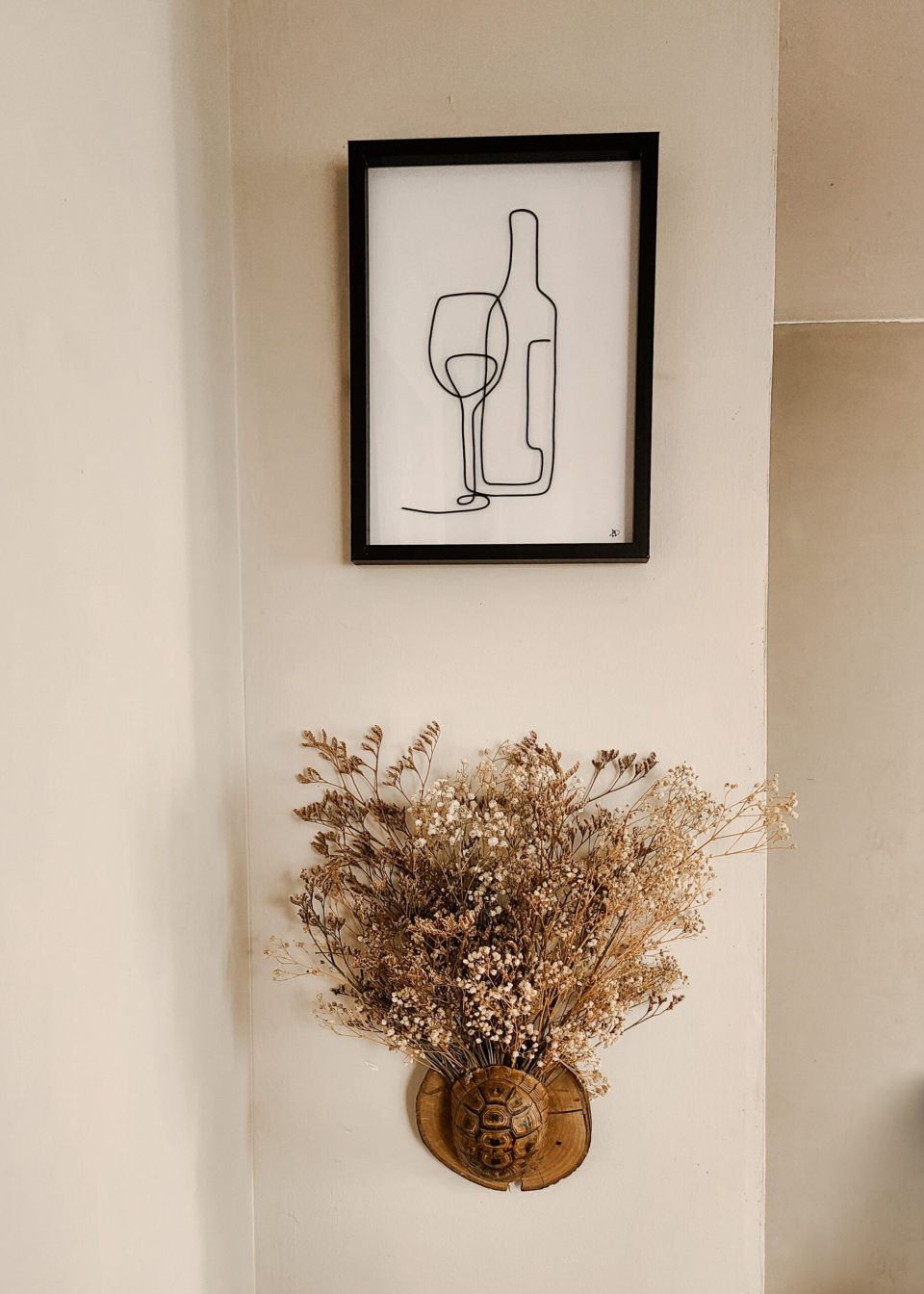• Design Élégant : Mon tableau en fil de fer représente fidèlement une bouteille de vin et son verre avec une attention minutieuse aux détails. Les courbes et les lignes du fil de fer créent une apparence artistique et moderne qui s’intègre harmonieusement dans tous les styles de décoration.